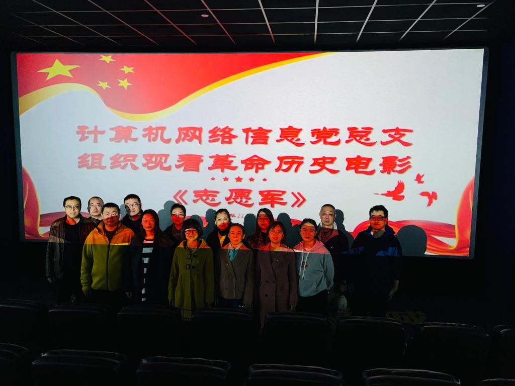 为持续推进学习贯彻习近平新时代中国特色社会主义思想主题教育走深走实,进一步加强爱国主义教育,厚植爱国主义情怀,传承和弘扬伟大抗美援朝精神,2023年11月9日下午,计算机网络信息党总支组织全体教师党员集中观看红色影片《志愿军:雄兵出击》,加强思想淬炼,接受党性教育,汲取奋进力量。