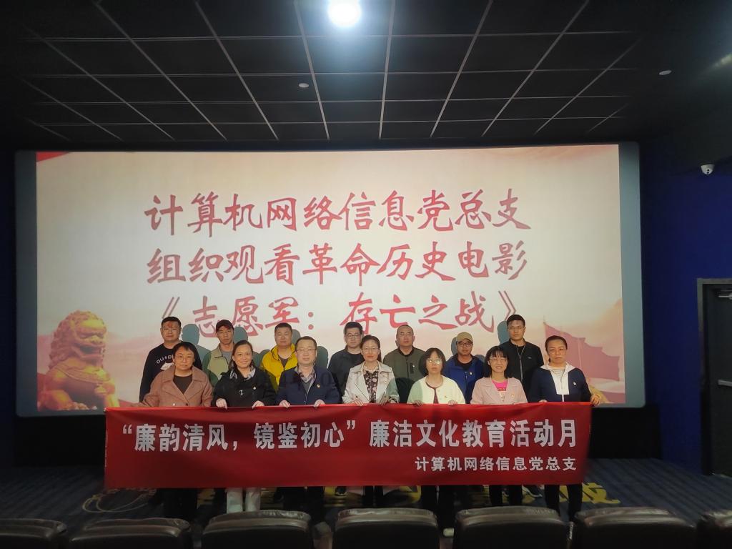 为庆祝中华人民共和国成立75周年,深入学习贯彻党的二十届三中全会精神,进一步巩固拓展党史学习教育成果,开展红色基因传承行动,培育和践行社会主义核心价值观,加强党员党性教育,涵养清风正气,培育清廉品格,2024年10月17日下午,计算机网络信息党总支组织全体教师党员集中观看红色电影《志愿军:存亡之战》,加强思想淬炼,接受党性教育,汲取奋进力量。