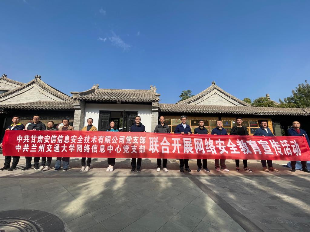 正值甘肃省网络安全宣传周,为更好地做好网络安全教育宣传工作,强化网络安全防范意识,网络信息中心党支部联合甘肃安信信息安全技术有限公司党支部于10月17日在兰州市安宁区网络安全产业和教育基地开展网络安全教育宣传主题党日活动,以“强化网络安全意识,筑牢网络安全屏障”为主题,深入学习网络安全知识,加强网络安全意识,掌握相关政策法规,筑牢网络安全屏障,共建网络安全,共享网络文明。