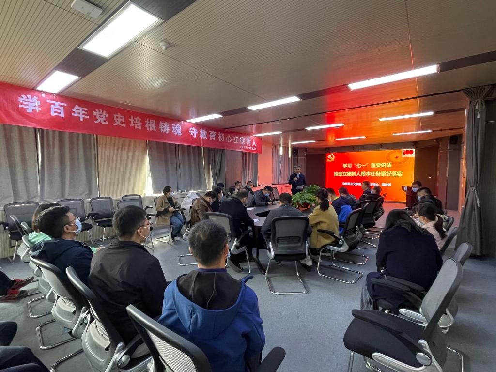 按照《兰州交通大学“立德树人”主题教育宣传活动实施方案》(兰交党发〔2019〕63号)要求,结合党史学习教育,计算机网络信息党总支组织开展“学百年党史培根铸魂 守教育初心立德树人” 专题党课活动,10月20日下午诚邀我校马克思主义学院副教授李辉山为全体教职工进行宣讲,培育和践行社会主义核心价值观。