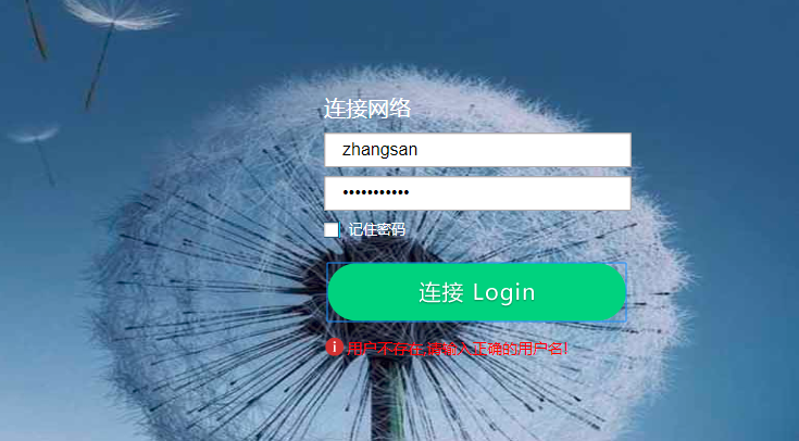 b、用户上网时打开浏览器任意访问一个互联网的网址,浏览器会跳转到网络认证的界面,输入用户名密码后点击“连接Login”,即可上网。