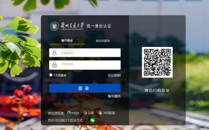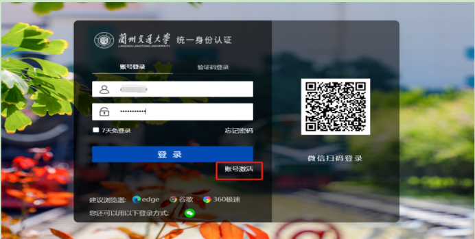 第一步 用户访问兰州交通大学信息门户http://authserver.lzjtu.edu.cn/authserver/login,进入认证界面后点击“帐号激活”