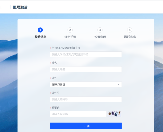 填写自己的工号、姓名以及证件类型、证件号码,确认身份的有效性