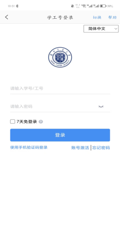 勾选今日校园使用协议,点击“学工号”,进入如下界面