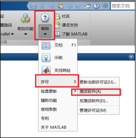 对于安装了MATLAB R2021b之前版本的计算机设备,您需要通过打开激活客户端激活MATLAB。您可以通过在MATLAB软件界面点击“帮助 > 许可 > 激活软件”打开激活客户端(如果license已过期,MATLAB会自动跳出激活客户端),请按照激活客户端的指引,通过“使用Internet自动激活”的方式,登录您的MathWorks账户来完成许可证更新操作(请参考下图)。