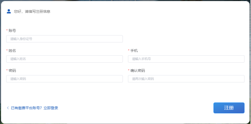 若此时无系统账户,先行点击“注册”,自行完成用户注册;