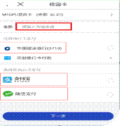 3.点击【充值】,可以选择已绑定的“建行借记卡”的【银行支付】或【扫码支付】。