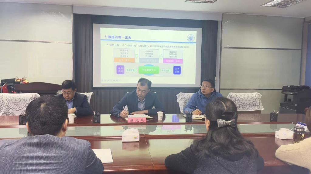 陈光武在认真听取汇报后,对中心的各项工作给予充分肯定,强调网络信息中心要站在学校“1152”发展目标的大局上来谋划和推进智慧校园建设工作,推动全校整体信息化水平再上台阶,为学校治理体系和治理能力现代化建设提供重要支撑和保障。同时提出几点工作要求:一是做好调研和规划,要在通盘考虑、科学合理规划的基础上,分阶段逐步实施,强化校园数字基础设施建设和数据服务、智慧应用、智慧教育,真正实现简约化、集成化、智能化、精准化。二是要解决痛点问题,助力服务学校发展和服务师生,要加强业务部门协同,强化数据共享应用,加快教室信息化建设,着力解决师生反映强烈的痛点、难点、堵点问题。三是筑牢网络安全屏障,加强信息安全防护。四是切实履行“一岗双责”,持续抓好党建工作,提高政治站位,强化使命担当,把思想和行动统一起来,有效调动团队积极性和主动性,齐心协力为学校智慧校园建设奉献力量。