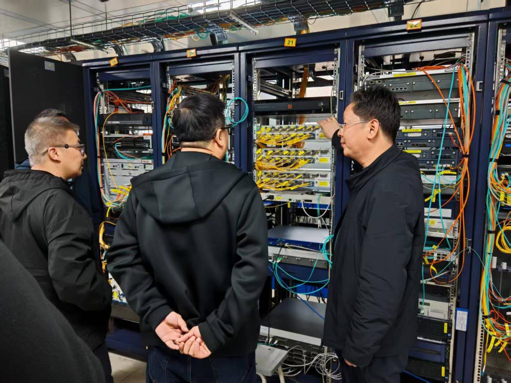 座谈会上,王海涌对蒋泳波一行的到来表示欢迎,并简要介绍了我校信息化建设的整体规划、推进历程及阶段性发展成效。蒋泳波介绍了此次交流的主要目的,重点就我校全光网建设相关情况进行详细了解,具体咨询了全光网建设的技术方案、实施步骤以及建成两年来在校园教学、科研、管理等领域的应用成效。网络信息中心工作人员结合建设实际,详细回应了相关问题,分享了全光网部署、运维过程中的实践经验与优化举措,并陪同交流组参观了我校机房及全光网综合布线现场,直观展示了全光网建设的实际部署情况与运维管理模式。同时,网络信息中心就校园网整体架构优化、数据分级分类管理、智算中台建设及超融合平台应用等重点工作,与兰州理工大学交流组进行深入探讨,对方结合自身建设实践,分享了相关工作思路与实操经验,双方交流务实深入、互有启发。